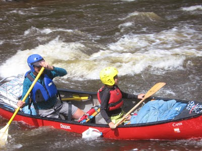 Water so warm in fact, that swimming and beach play were possible. Peter's canoe serves as an impromptu drying rack after a regrettable incident with a broadsided rock lurking in the flow. It took us ten minutes to pump the boat dry, and some of the dry bags weren't.